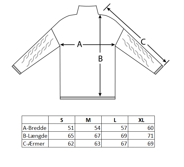 Men det er ikke kun farven, der gør denne bluse speciel. Mønsteret af kabelstrik på ærmerne giver en sofistikeret tekstur og dybde til designet, hvilket yderligere forstærker det luksuriøse indtryk. Den klassiske rullekrave tilføjer et strejf af elegance og beskyttelse mod kulden, mens den samtidig sikrer en fin pasform.